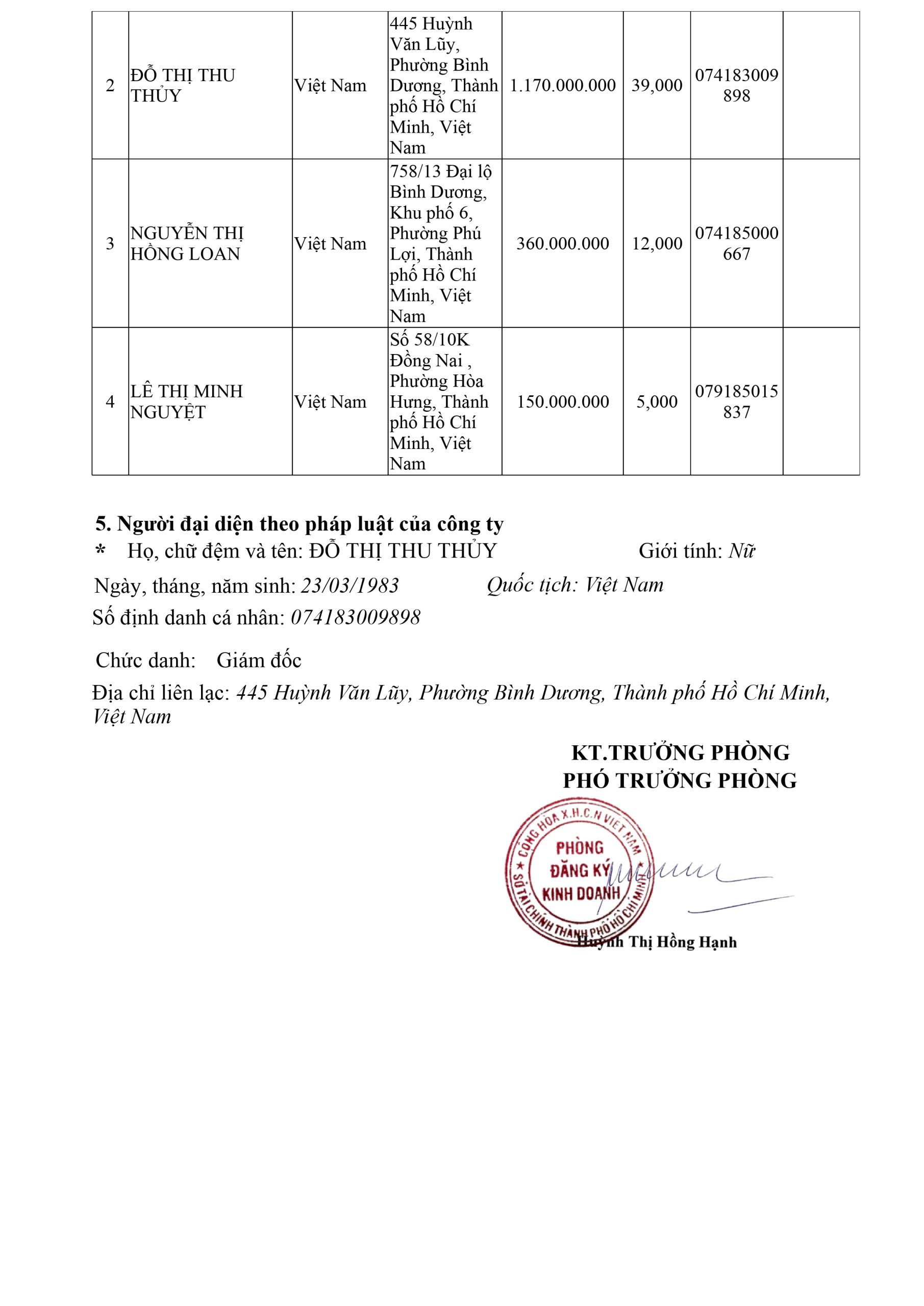 Danh sách thành viên BGĐ: